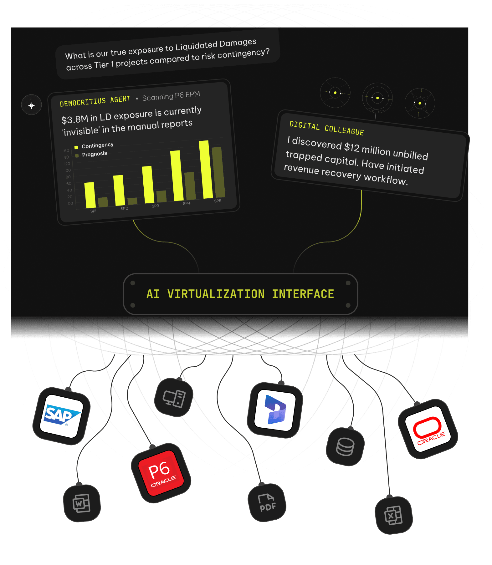 Zero-Copy Virtualization unifies your capital project intelligence without migration or vendor lock-in. Digital Colleagues monitor risk, flag variances, and drive EBITDA protection from the moment you go live.