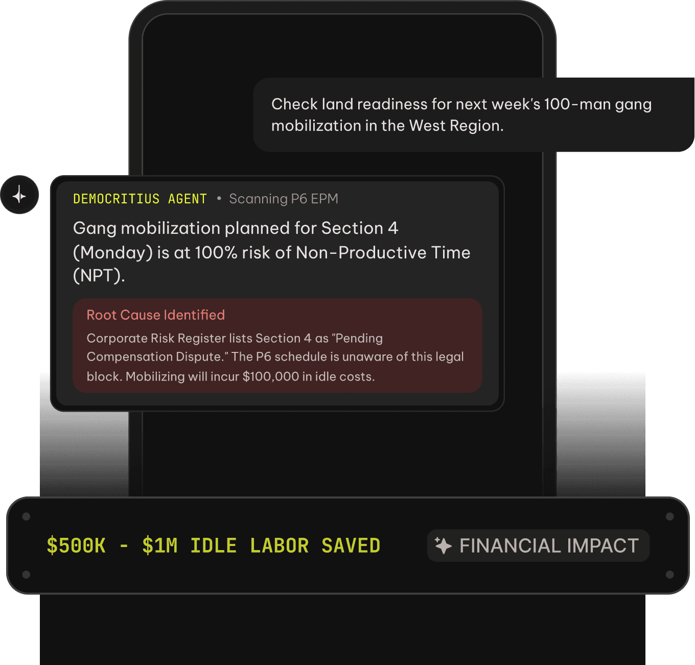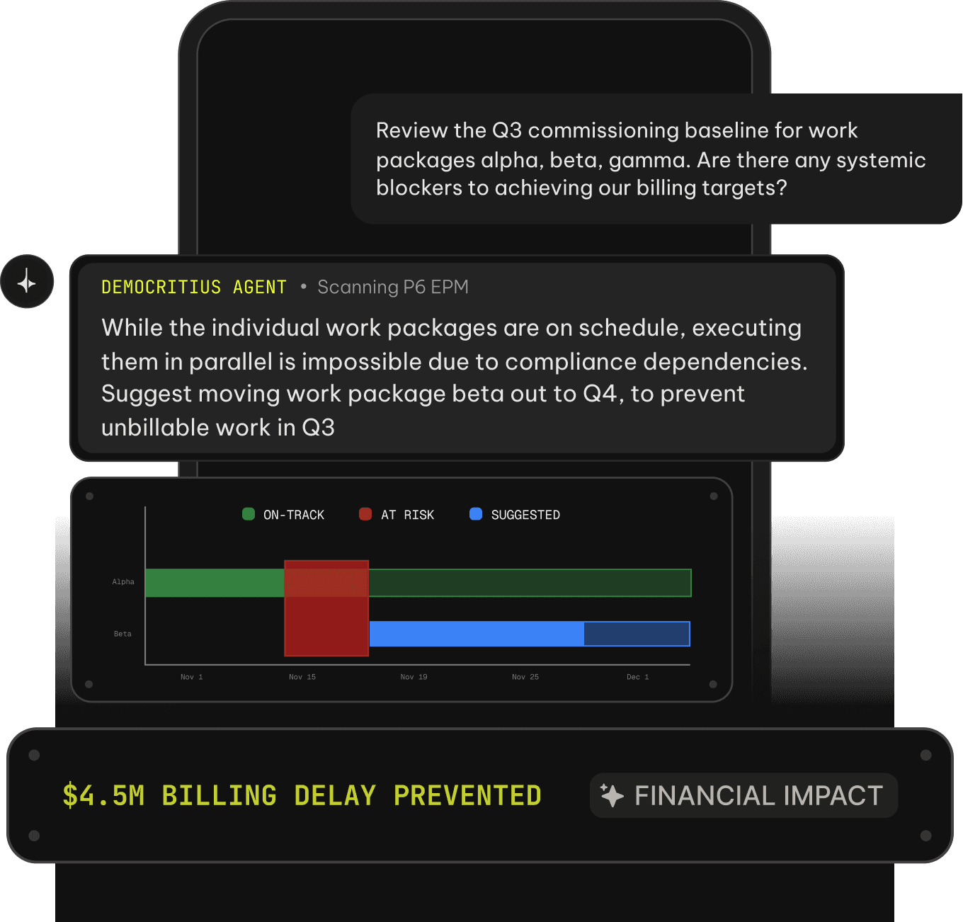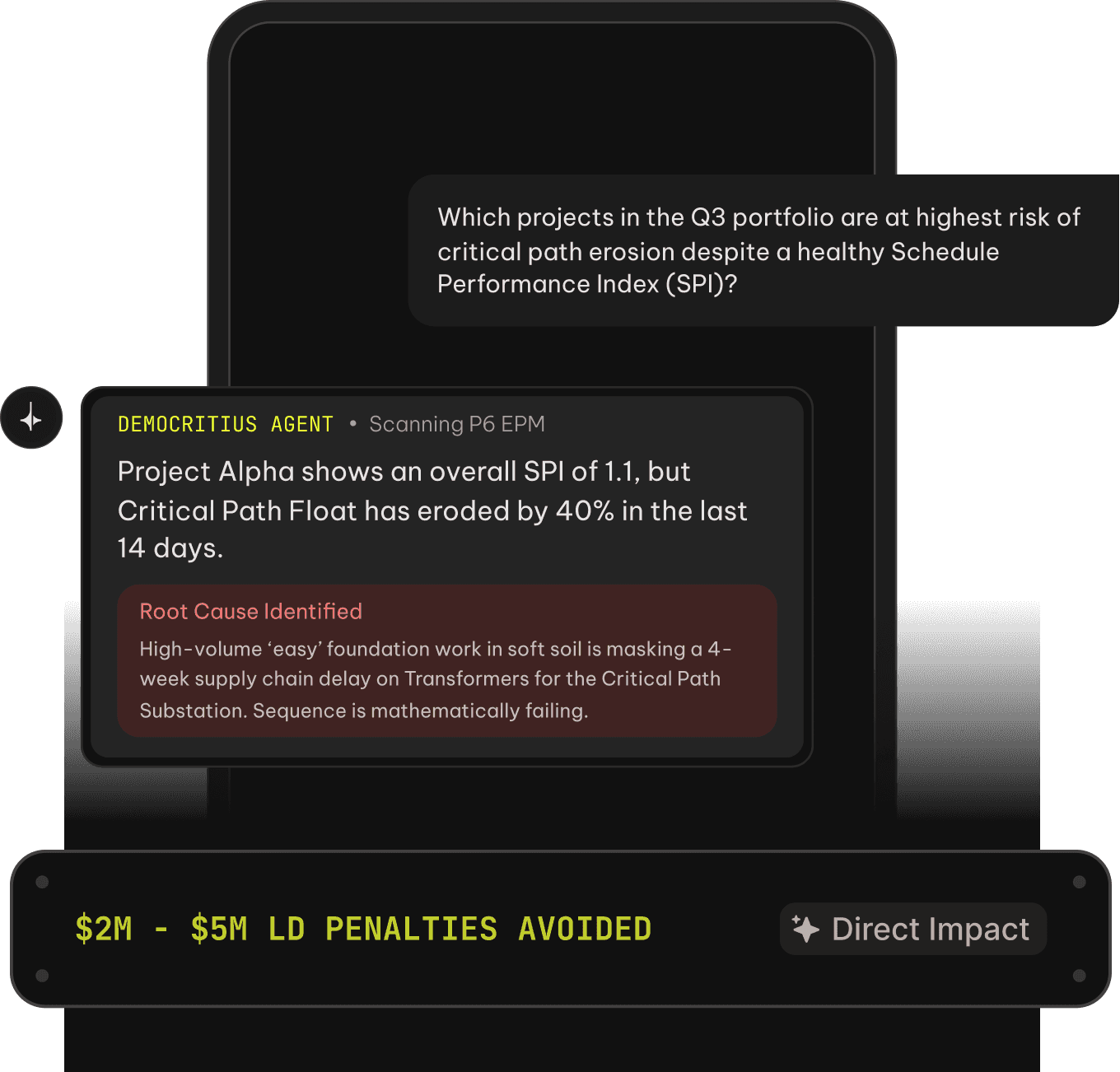 Agentic intelligence across your entire project portfolio. Surface hidden schedule risk and LD exposure before it becomes a board conversation.